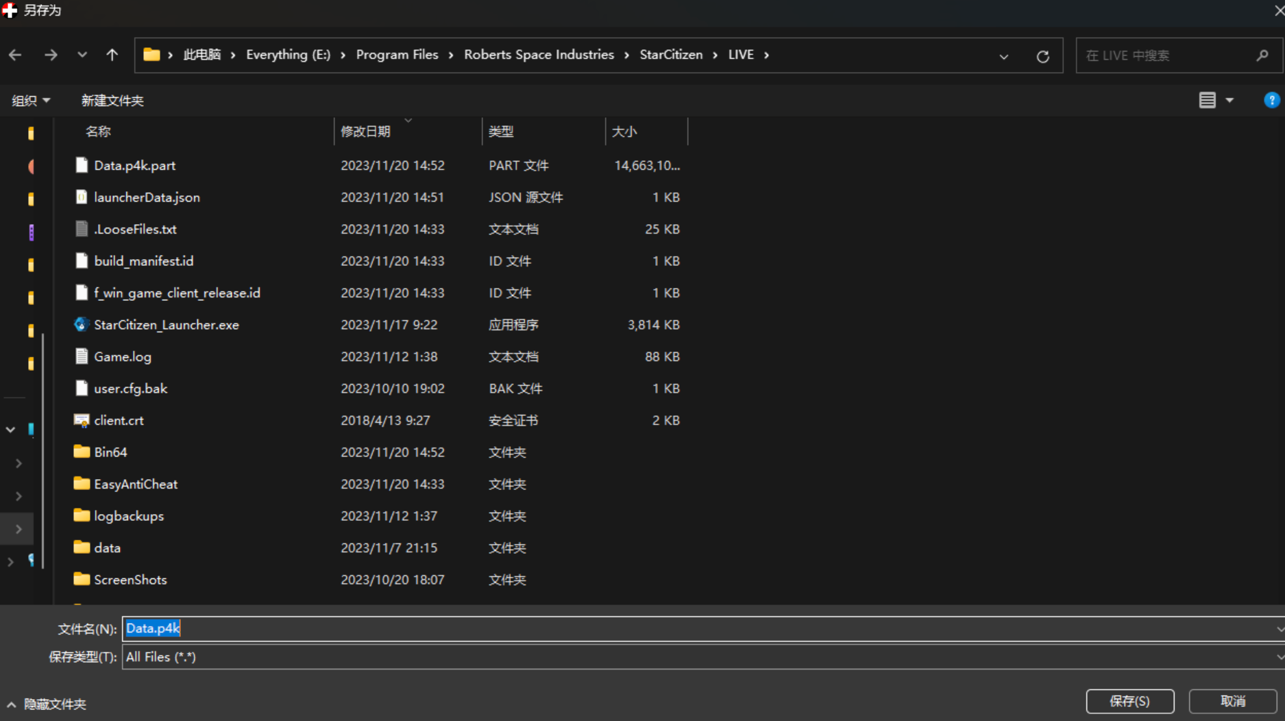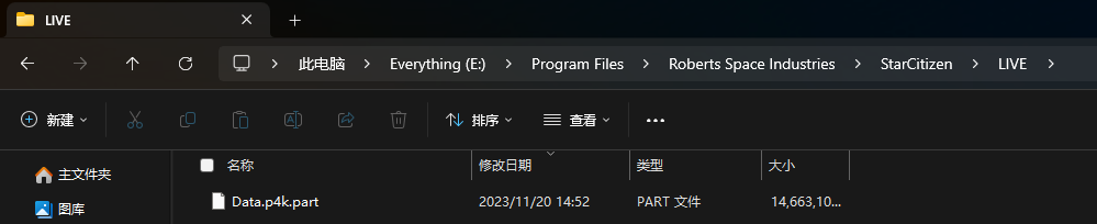 - 查看你的游戏根目录,它应该包含一个 Data.p4k.part 文件: